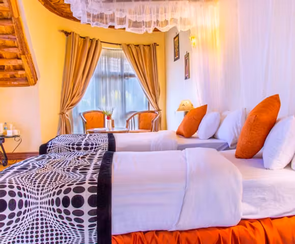The Lodge is located in the tourist town of Karatu on the Western south Slopes of Ngorongoro Crater at the 1,400 feet above sea level; the Lodge sits in a garden of flowers and vegetables. The property offers spectacular sweeping views of the hills and close distant to the Ngorongoro Crater, Lake Eyasi, Lake Manyara and Tarangire National Park.