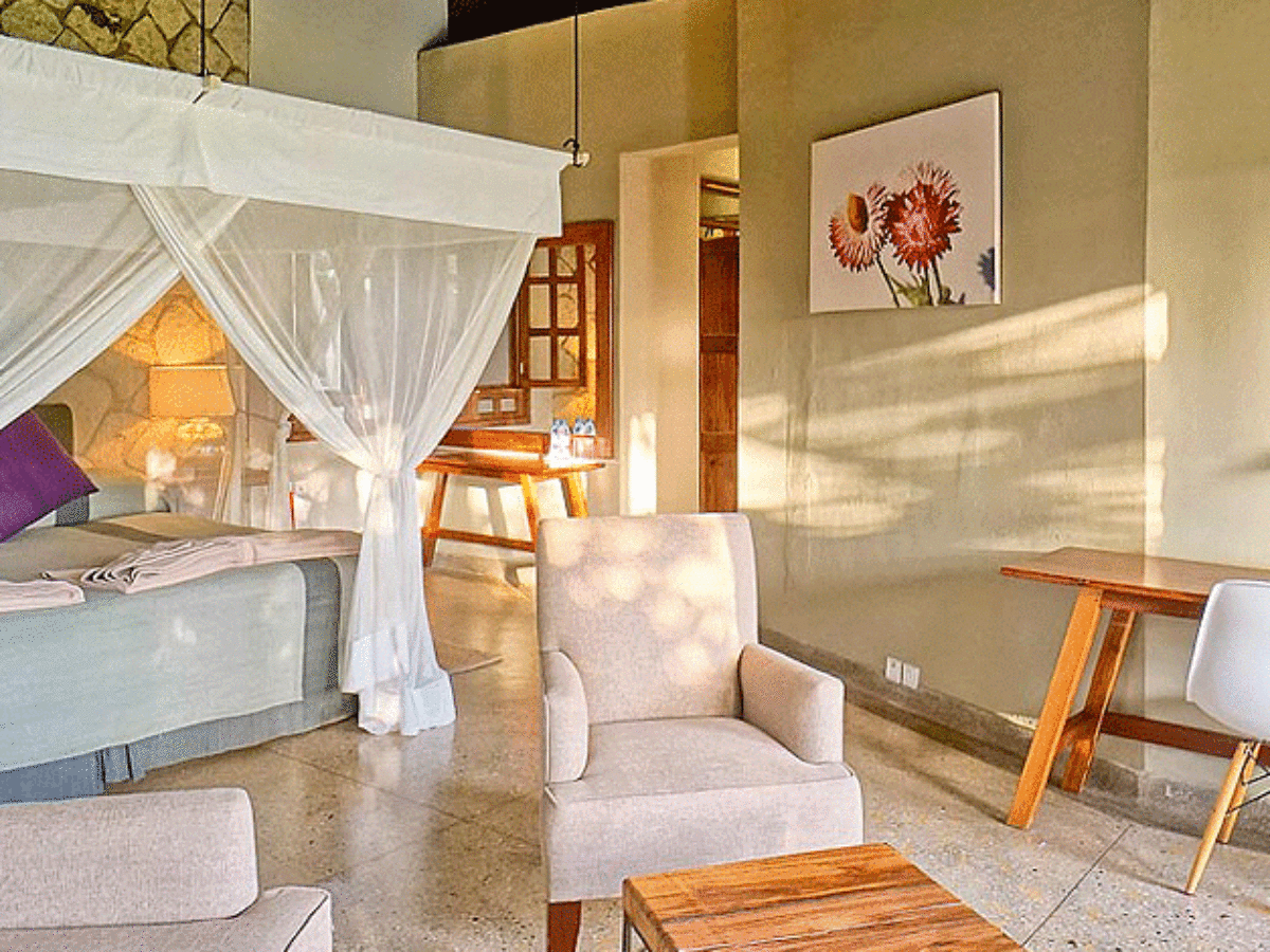 It has been designed and decorated in a modern African style that creates a fresh and light ambiance, very welcoming but with a touch of luxury.