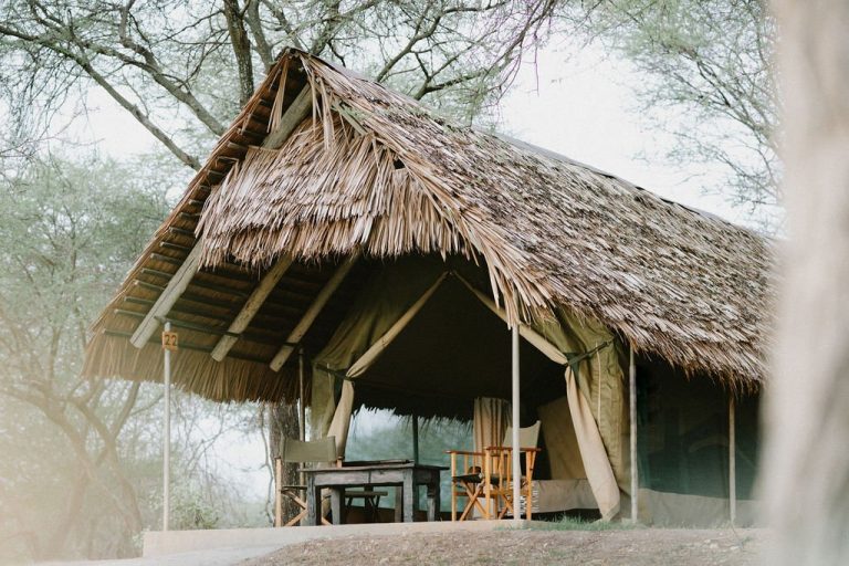 Built on top of a high bluff with a breathtaking panorama, our lodge is superbly located in Tarangire National Park, providing one of the best views in Africa. Carving out the landscape below the lodge is the Tarangire River, a favourite watering place, which attracts impressive numbers and a variety of game. The scene unfolds before you while lounging on the outdoor terrace, allowing you to appreciate Tarangire’s diverse wildlife. At the heart of the lodge are the impressively high thatched roofs of the lounge and dining room. The open-sided design allows an uninterrupted view of the landscape and wildlife below, and captures the cooling breeze while you dine on our delicious home cooked safari cuisine.