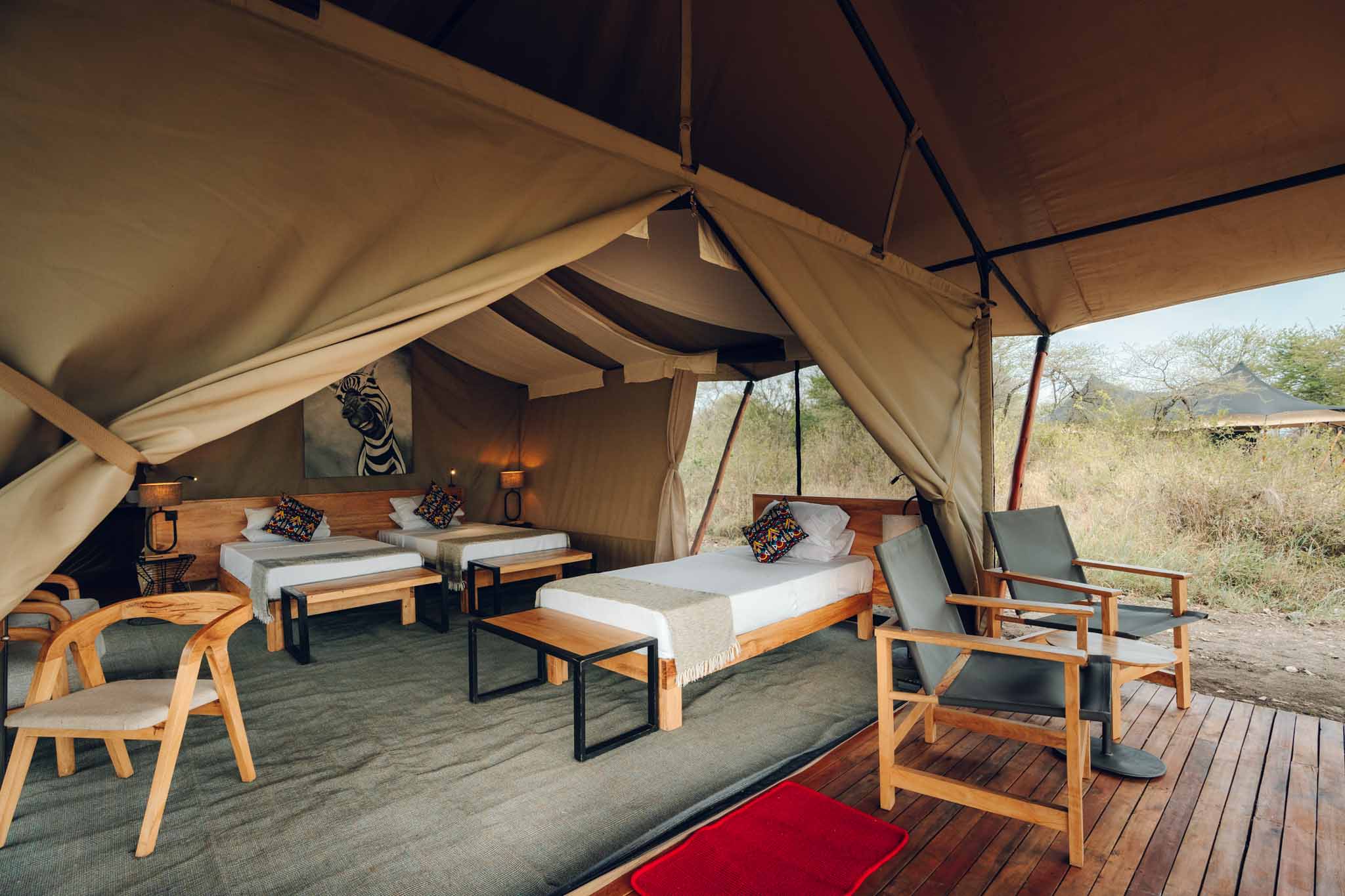 Tukaone Serengeti Camp is a private safari camp perfectly located at the heart of the Great Serengeti, with a stunning view of the Hembe Hills and the endless plains of the Serengeti. Its exceptional location is broadly encompassed by a variety of different fauna and flora, with millions of wild animals migrating through these plains year after year.